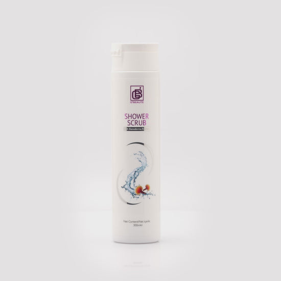 A gentle creamy 2-in-1 body cleanser and exfoliant from the Gano Derma personal-care line — formulated with Ganoderma Lucidum extract and apricot seed powder as the natural scrub bead. Cleanses without stripping the skin's protective lipid layer, then gently lifts dull, rough surface cells. 300 ml pump bottle.